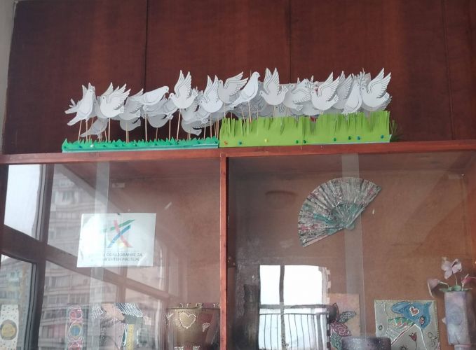 След като прочетоха разказа „Гълъбът на прозореца“, децата изработиха красив макет – символ на мира, любовта, надеждата и духовността.