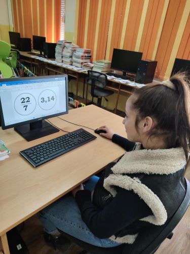 Компютрите не са само за игри и забавление, а са мощен инструмент за разкриване на тайните на вселената. Наш главен герой е най-известното число в света – числото Пи. Младите компютърни специалисти от VI Б клас с ръководител Диана Чавдарова впрегнаха своите умения, за да превърнат една абстрактна математическа константа в нещо видимо и красиво. Използваха софтуерни инструменти, за да визуализират безкрайността на Пи и да създадат прецизни модели. На информационно табло представиха любопитни факти за ирационалното число. Декорацията е изработена като символ на хармонията между геометрията и технологиите.