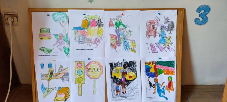 Рисуваха ситуации от движението – децата създадоха прекрасни рисунки, показващи как трябва да се пресича безопасно, какво правим на пешеходна пътека и как се ориентираме по пътните знаци.